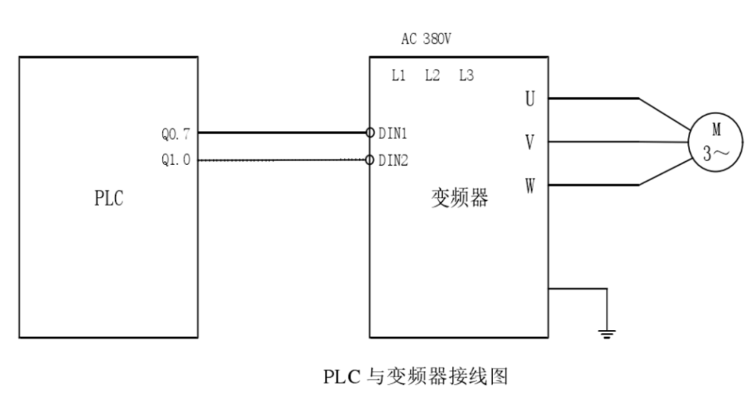 PLC 數(shù)字量輸出端子 Q0.7、Q1.0 分別與變頻器的數(shù)字輸入端口 DIN1、DIN2 相連,設(shè)計(jì)PLC 組合輸出端口 Q1.0、Q0.7 的狀態(tài),將風(fēng)機(jī)風(fēng)量分為 3 檔調(diào)節(jié),如下表所示,這樣就完成了一項(xiàng)VOCs廢氣治理工程的變頻風(fēng)機(jī)控制(含編程邏輯)。
